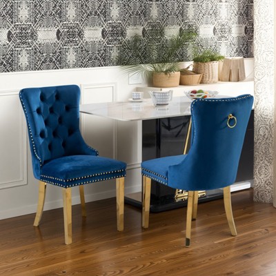 Okak Chenille Dining Chairs Set of 2, Modern Kitchen Chairs with Comfy Fabric Upholstered, Accent Chairs with Stainless Steel Plating Legs