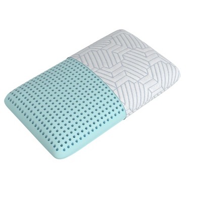 Product Name: Okak Cool Tech Bed Pillow with Gel-Layered Memory Foam, Pressure Relief Cervical Neck Pillow, Travel Pillow for All Sleeper Use, High, White+Blue
