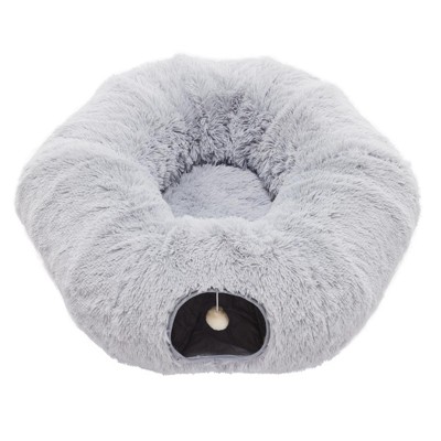 Product Name: Okak Durable Cat Bed with Soft Plush Surface, Cat Bed Cave with Donut Tunnel, Washable Pet Bed for Cats, Kittens and Rabbits, Gray