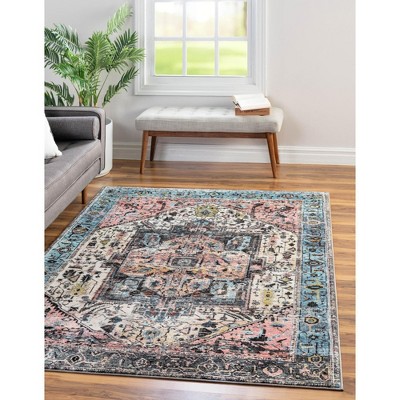 Product Name: Okak Elegant Vintage Design Bohemia Style Large Washable Area Rug for Living Room,Bedroom,Flower Design Non-slip Rug Blue