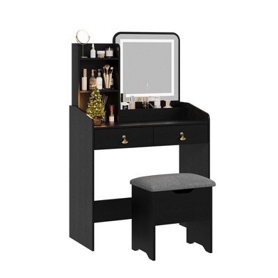 Okak Elegent Vanity Desk with Wide Mirror, Small Vanity Desk with 2 Drawers and Shelf, Compact Vanity for Bedroom, Living Room, Studio, White