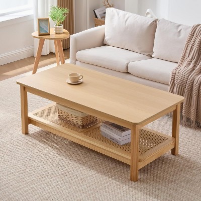 Okak Farmhouse Crafts Coffee Table Curved Art Deco Design for Apartment,Easy Assembly,Natural Wood