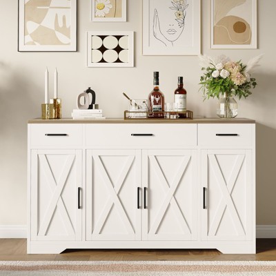 Okak Farmhouse Design Storage Buffet Cabinet with 4 Glass Doors,Decorative Sideboard Pantry Cabinet for Dining Room,Black