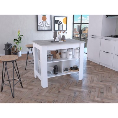 Okak Minimalism Kitchen Island with Storage, Kitchen Island Table with 3 Large Shelves Under Table, Countertop Organizer for Kitchen, White+Oak