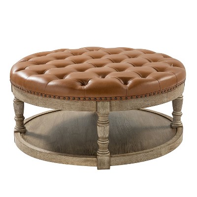 Okak Modern 2-Tier Coffee Table Button Tufted Round Ottoman with Storage Shelf,Upholstered Storage Ottoman for Living Room,Bedroom