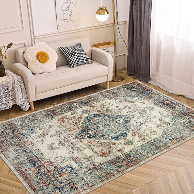 Okak 3FT*5FT Modern Area Rug with Abstract Pattern, Non-Slip and Non-Shedding Fluffy Rug, Low Pile Washable Rug for Living Room, Kitchen, Multi
