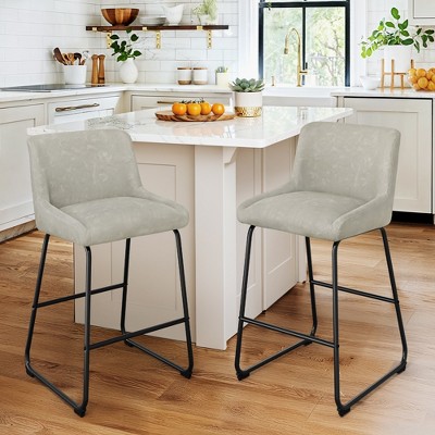 Okak Modern Bar Stools Set of 2, Upholstered Counter Height Chairs with Boucle Fabric and Metal Frame, Kitchen Island Bar Chairs, White
