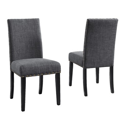 Okak Modern Dining Chairs Set of 2, Fabric Kitchen Side Chairs with Nailhead Trim & Sturdy hardwood Legs for Dining/Living Room, Gray