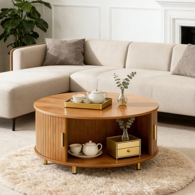 Okak Modern Handcrafted Wooden Coffee Table, 31.5"L with Sturdy Pedestal, Space-Saving Round Center Table for Small Living Room Office, Matt Black