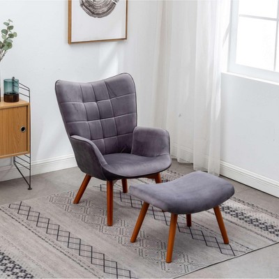 Okak Modern Microfiber Armless Accent Chair with Button-Tufted Detail,Memory Foam Lounge Chair for Living Room,Bedroom,Gray