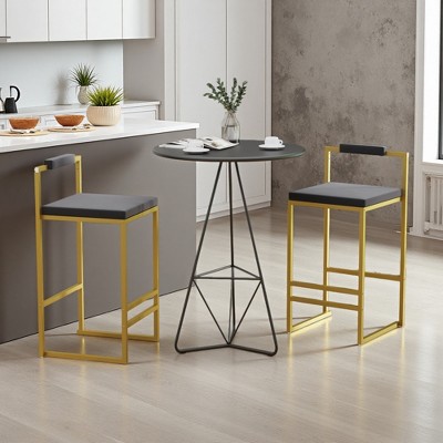 Okak Modern Set of 2 Velvet Padded Bar Stools with Footrest & Sturdy Base,Upholstered Counter Height Dining Chairs