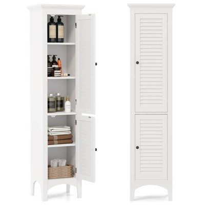 Okak Narrow Freestanding Bathroom Storage Cabinet with Adjustable Shelves,Tall Linen Tower with Drawer for Bathroom,Living Room,White+Walnut