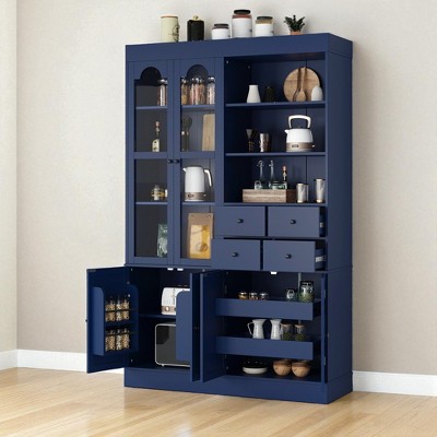 Okak 63in Modern Pantry Cabinets, Freestanding Kitchen Cabinet with 4 Doors and 4 Drawers, Storage Cabinet for Living Room, Dining Room, White