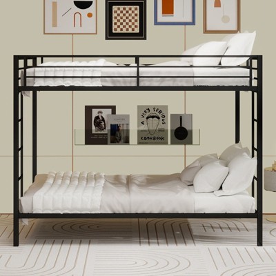 Okak Queen Robust Metal Bunk Bed with Ladders & Full-Length Guardrai,Contemporary Bed Frame for Bedroom,Apartments,Black