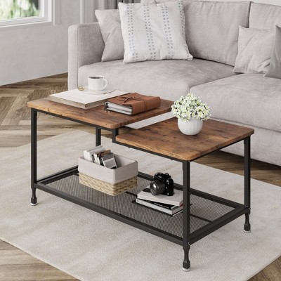 Okak 31" Round Coffee Table with Wood Top and Black Cross Metal Legs Retro Accent for Living Room, Wood