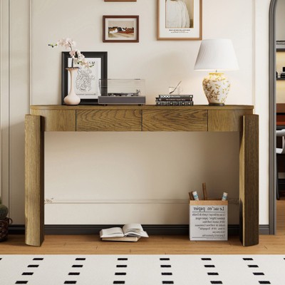 Product Name: Okak Rustic Wood Grain Console Table with Oval Top & Fluted Legs,Storage Entryway Table Foyer Tables for Entryway,Hallway,Living Room,Pine