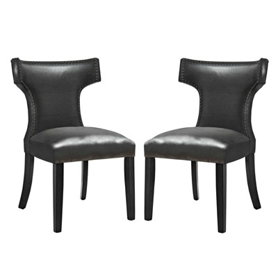 Okak Set of 2 Modern Resin Dining Chairs, Kitchen Side Chairs with Beechwood Tapered Legs for Kitchen Living Room Dining Room, Black
