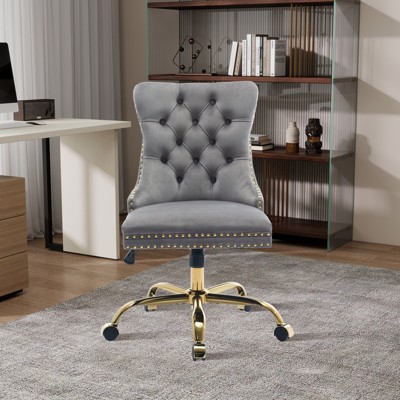 Okak Simple Luxury Tufted Button Swivel Office Chair with Chrome Metal Base & Nailhead Trim,Adjustable Desk Chair for Office,Living Room,Gray