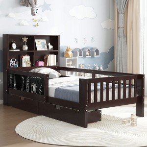 Product Name: Okak Twin Size Space-saving Design Storage Bed Frame with Chalkboard & Drawers,Solid Wood Platform Bed for Kids Room,Espresso