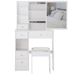 Okak Vanity Tables and Stool Set with 29.2" Small Left-Drawer,Dressing Table with Oversized Touch-Sensitive Sliding Mirror,White