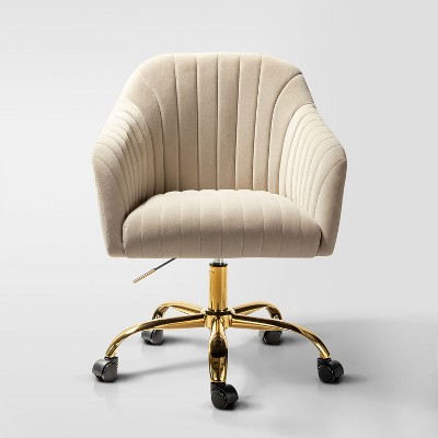 Okak Velvet Office Chair, Desk Chair with Golden Metal Base, Swivel Chair with Adjustable Height for Office, Home, Purple