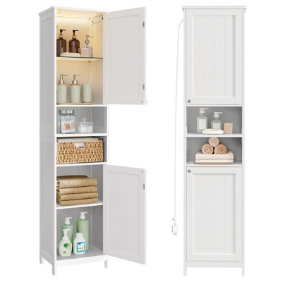 OKD 68″ Bathroom Floor Cabinets, Tall Linen Towers with Adjustable Shelves