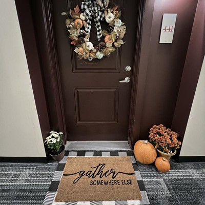 Okuna Outpost Fall Welcome Mat for Front Porch, Outdoor Thanksgiving Door Mat, Gather Somewhere Else, 17 x 30 In