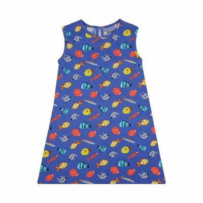 This cute Sleeveless A-Line Dress comes in Breezy Daisy and Fuzzy Fishes prints. Made of ultra-breathable Organic Cotton, its arm holes are designed to be non-irritable to keep your baby girl cheerful and smiling.
