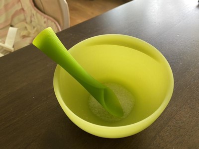 This spoon and bowl combo made transition my little one to food so easy. I’m able to steam straight in the bowl and mash it with a little water or breast milk and get the perfect consistency and texture that my baby likes. My one tip with the silicone material is to use fragrance free soap when washing. The silicone can absorb the soap and leave a funny taste on the surface.