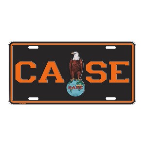 The Case Old Abe Eagle Metal License Plate with Embossing is a premium collectible item for Case enthusiasts. This license plate features a striking design of the iconic Case Old Abe Eagle logo with embossing for added depth and detail. Made from durable metal, powder coated with black and orange, it is a perfect addition to your collection or a unique way to showcase your Case pride.