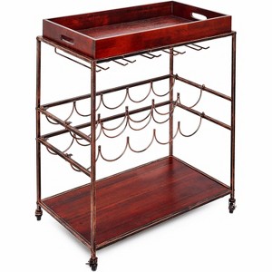 Product Name: Old Dutch International Avalon Wine/Serving Cart 28" x 16" x 32" Antique Copper, Rosewood Stained Rubberwood