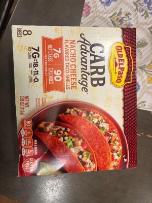 - 7G NET CARBS: The Old El Paso Crunchy Taco Shells you love with less net carbs and delicious nacho cheese flavor; A two-shell serving contains 7g net carbs* and 90 calories (7g net carbs = 18g total carbs - 11g fiber - 0g sugar alcohol)