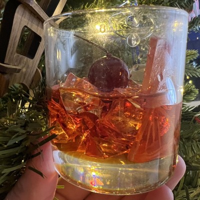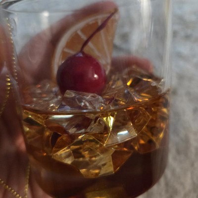 Raise a toast to the holiday season with the Old Fashioned Cocktail Christmas Tree Ornament from Wondershop™. Made from resin, plastic and glass, this Christmas tree ornament features an old fashioned in a cocktail glass with an artificial cherry and ice for a classy vibe. Plus, the top hanging loop makes it easy to place and adjust on your Christmas tree.