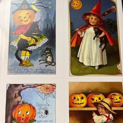Bringing a fairy-tale quality to the holiday, these vintage cards (many with charming rhymes) recall the romantic nature of long-ago Halloweens with festive scenes of kids and cats, witches and bats, jack-o'-lanterns, fortune-telling, pranks, and white-sheeted ghosts.