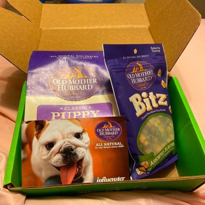 [This review was collected as part of a promotion.] So excited to get this box. I have a very large, now 5 month old, German/Australian mix named Sasquatch. These treats were perfect helping with his training. He loves them, he knows the Old Mother Hubbard bags. I love them, they're not greasy and they made training my pup easier.