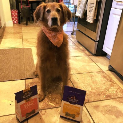 [This review was collected as part of a promotion.] I gave both the chicnapple and the all the fixins biscuits to my dog. He absolute loved them. I love that they are natural and good for him. I will definitely be buying more after he is done with theses. They are also the perfect size. He is a very large golden retriever so we are conscious of his weight and dont want to give him overly sized dog treats. We plan to try the peanut butter flavor next.
