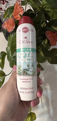 [This review was collected as part of a promotion.] I received this product in exchange of my honest review. This old spice Total Body Aloe + Rain deodorant spray is easy to apply and can be used in whole body. I like to use it underarms and feet. It is gentle and good for sensitive skin. It is long lasting gives cool freshness whole day.