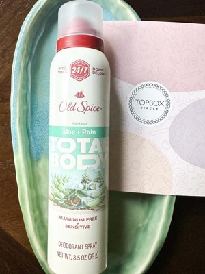 [This review was collected as part of a promotion.] Old Spice Invisible Spray Deodorant Aloe and Rain keeps me fresh all day. It's great for in between showers or before heading to the gym. With zero aluminum, parabens, phthalates, or dyes it is very gentle on my skin. It also has a natural nitrogen propellant. I received this product for free from Topbox Marketing for testing and review purposes.