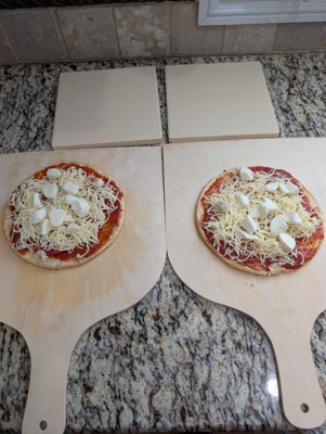 These were really fun for a little pizza party. I'm curious to see how they season and perform 6 months or so from now. They are the PERFECT size for the Market Pantry Mini Pizza crusts (7inches or so). We made our individual pizzas and applied them to the stones with pizzas peels. It got a little harder to remove the pizzas as we cooked more and more mini pizzas because of the baked on cheese/sauce. I wonder if this will improve with use/stone seasoning. The pizzas were delicious and cooked just right. Be sure to read the included document on rules of use - they were different than I remember with my older pizza stone. If you have difficulty processing some sensory textures you may want to handle these stones with oven mitts (even when cold). There is something about the feeling of the stone that is off-putting.