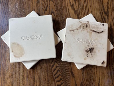 The Old Stone square pizza set is worth getting if you love making homemade pizza and you have a good crust recipe and a pizza peel! The crust we made had to rise for 24 hrs prior to baking, but it was so delicious and worth the time and effort. We’ve tried pizzas with our other baking stone but it just didn’t come out quite the same. The Old Stone set can handle such a high heat. We made multiple mini pizzas and they were delicious! The crust was crunchy and chewy and perfect. Definitely worth it! Anything baked on it is nearly impossible to completely clean off afterwards. I had to just accept the fact they would not be perfectly clean again.