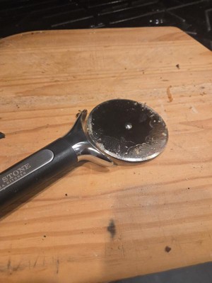 It’s a pizza cutter. It’s got a nice weight to it. It cut pizza like a champ. The huge issue/drawback I have is that it’s apparently not dishwasher safe. I read the packaging front to back and it did NOT say handwash only. It rusted on the blade being washed one time in the dishwasher. It wasn’t left in there for long afterwards either.