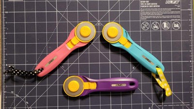 - The OLFA 45mm Quick-Change Rotary Cutter, Aqua is the perfect addition to any craft space.