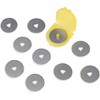 - This package contains ten 28mm rotary blades and a plastic container for easy storage.