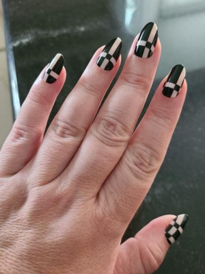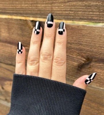 Olive & June Fake Nails - Geometric Plaid - M Oval - 32ct