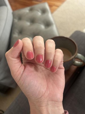 This is the first gel I’ve ever used on myself! I did the peel off base (only putting it in the center of the nail as directed). So far all my nails have done really well except one (I got the peel off base coat too close to the tip of my nail and it peeled). But it was easy to remove and redo. I did struggle getting thin coats, I feel like it applies pretty thick but I’m sure I just need more practice. Over all very easy to use, especially considering I’ve only done it once. Love this color! It feels like a good shade for fall!