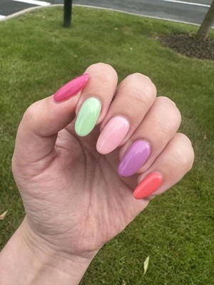 [This review was collected as part of a promotion.] One of my fav gel shades so far! Super easy to paint. Skittle mani with Aced It, Saltwater Taffy, Petal, and Field Day.