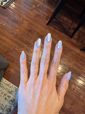 - A velvet effect icy blue manicure in a medium oval shape -Easy on, easy off press-on nails with adhesive tabs.