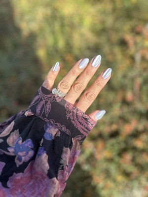 [This review was collected as part of a promotion.] Loved BP with is velvet finish!!! I don’t usually reach for BP but with velvet finish it looked silvery at times. I got compliments while out and about how pretty my nails were. They look natural, great length on me; no one guessed they were press-ons. Easy to apply. I work at a hardware store so I’m a little hard on my hands; they last until day 13 before I one popped off. Absolutely love this color and finish together!! I recommend OJ products very time I’m asked about my nails.
