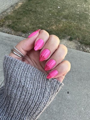 [This review was collected as part of a promotion.] Such a simple design on a flashy hot pink nail! I absolutely adored these and the chrome finish was the icing on top. They wear so comfortably and the application takes minutes!