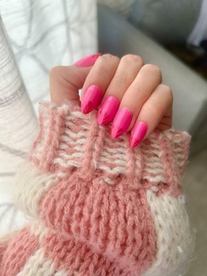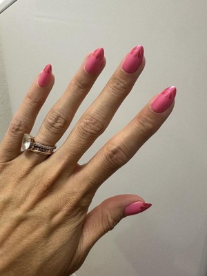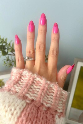 [This review was collected as part of a promotion.] These press-on nails are so much fun! The bright pink color with the fun chrome pop of magenta for a unique twist on a French tip is such a great design. I could see these being fun for the holidays too. The length/shape of these work well for my nails. I was able to get 5 full days wear, and I am very tough on my hands.